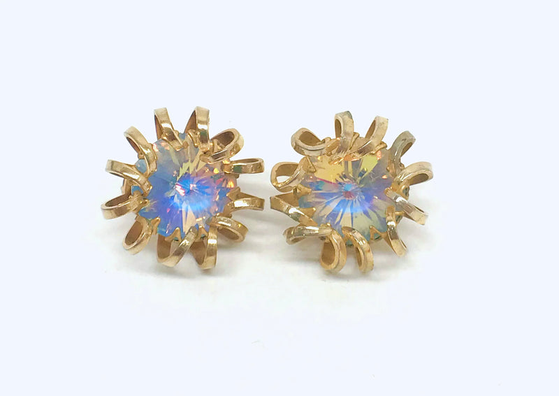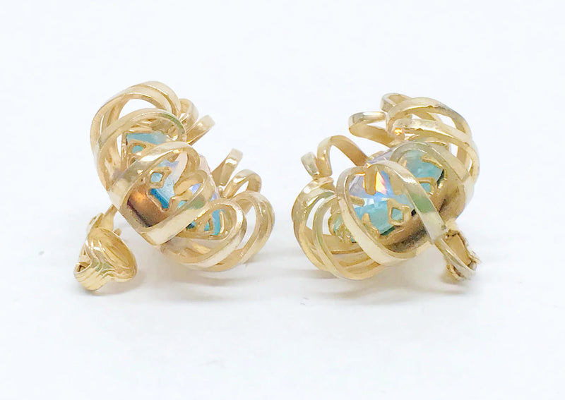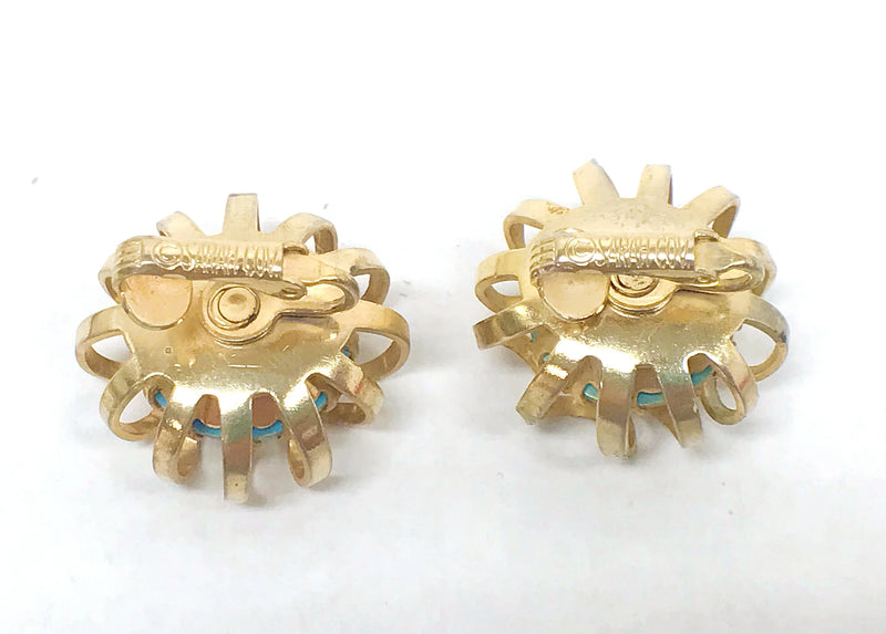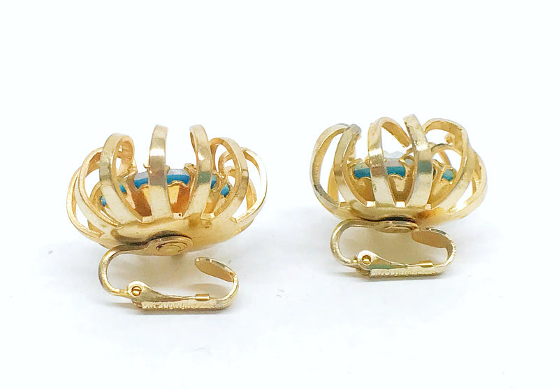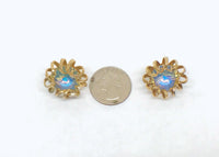 1969 Sarah Coventry Mystic Blue Gold Tone Clip-On Earrings