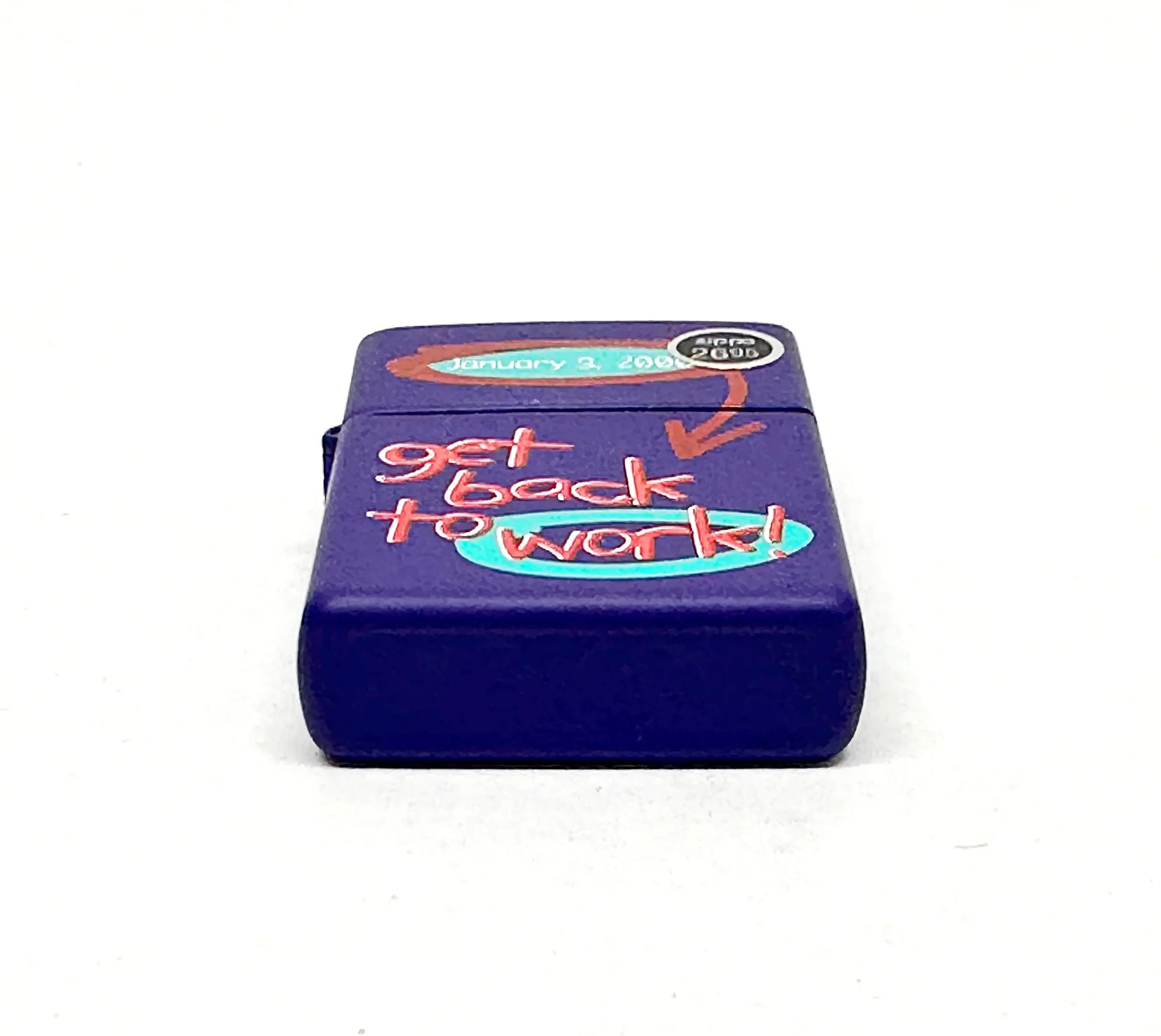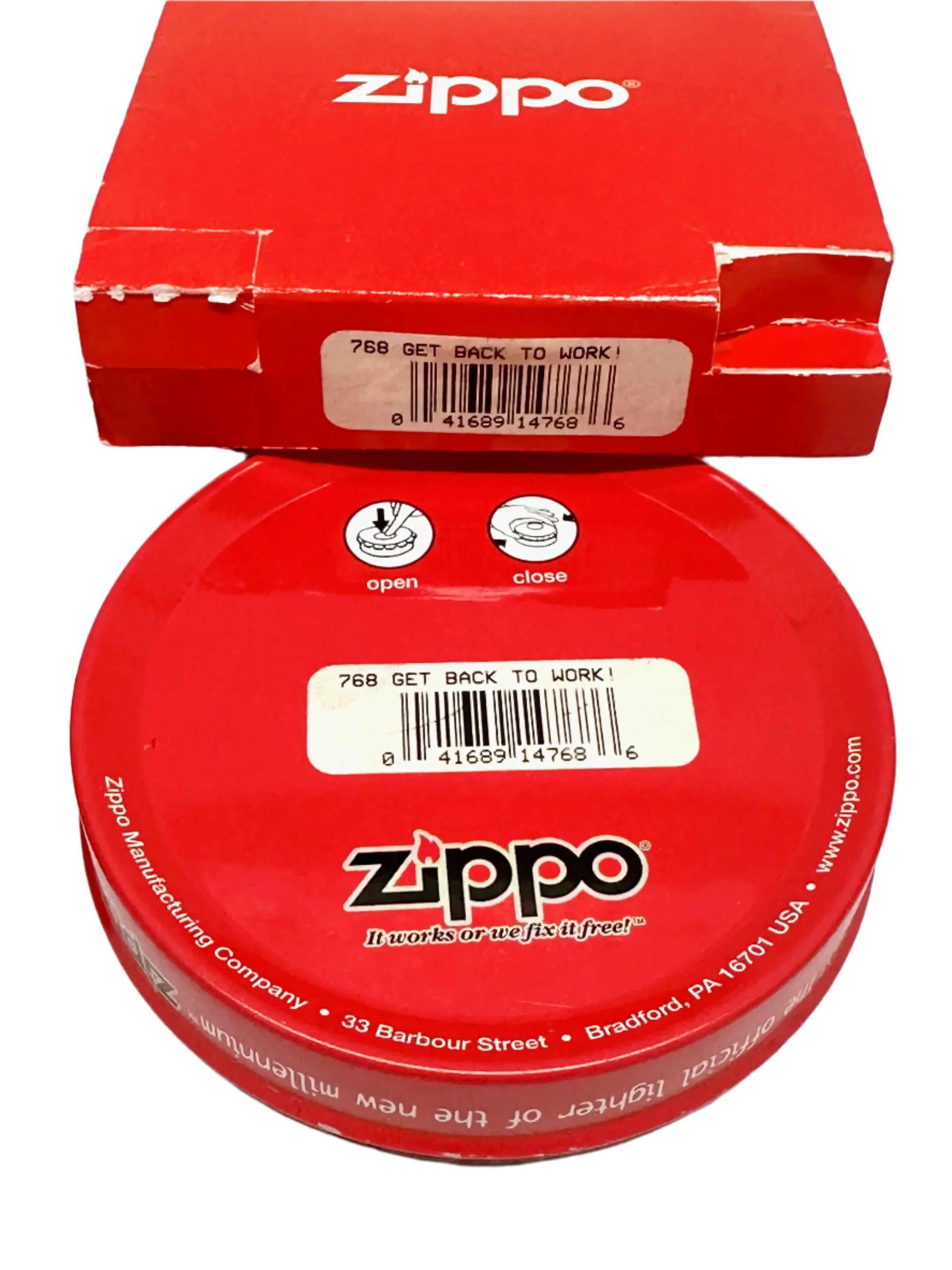 1999 Millennium Series Y2K Get Back To Work Zippo Lighter in Collector Tin and Sleeve