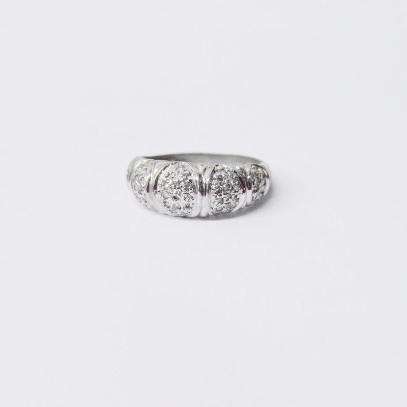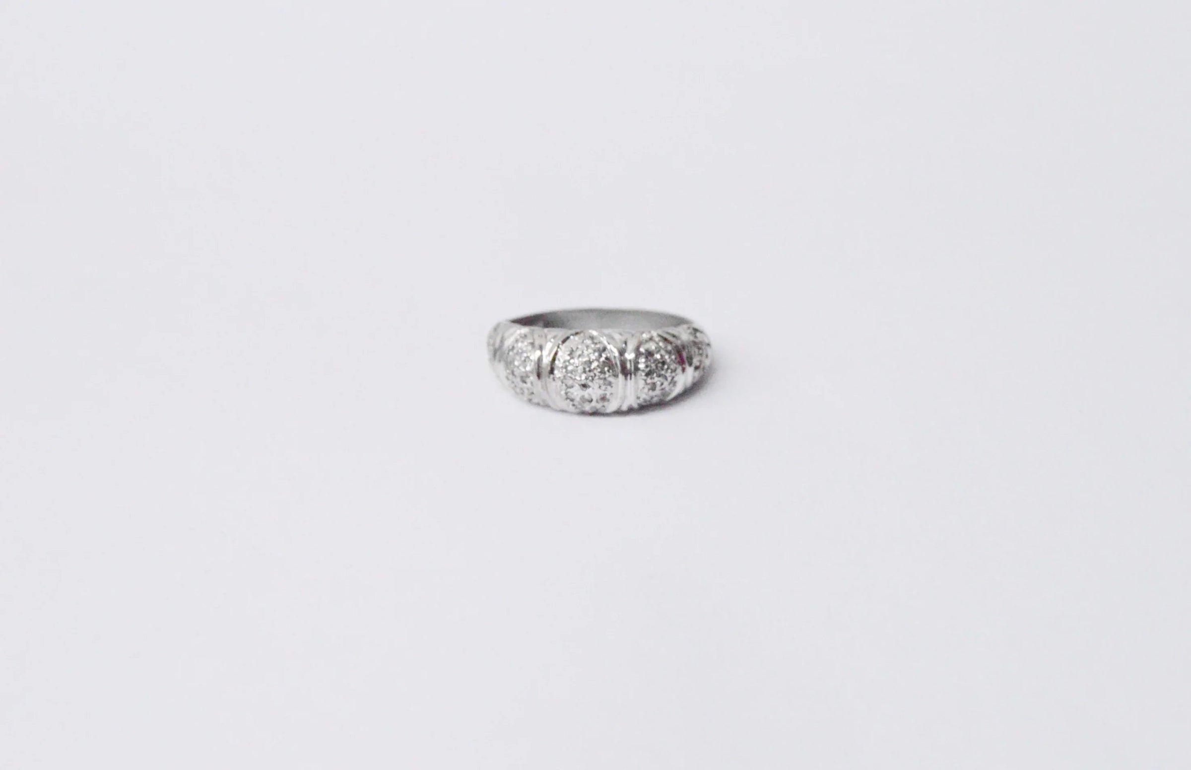 Sterling Silver designer ring band with shimmering CZ (Cubic Zirconia) gemstones in very good condition.