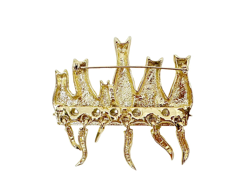 AJC Cats on a Shelf with Dangling Moving Tails Brooch Pin