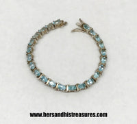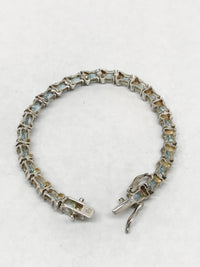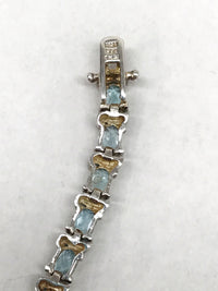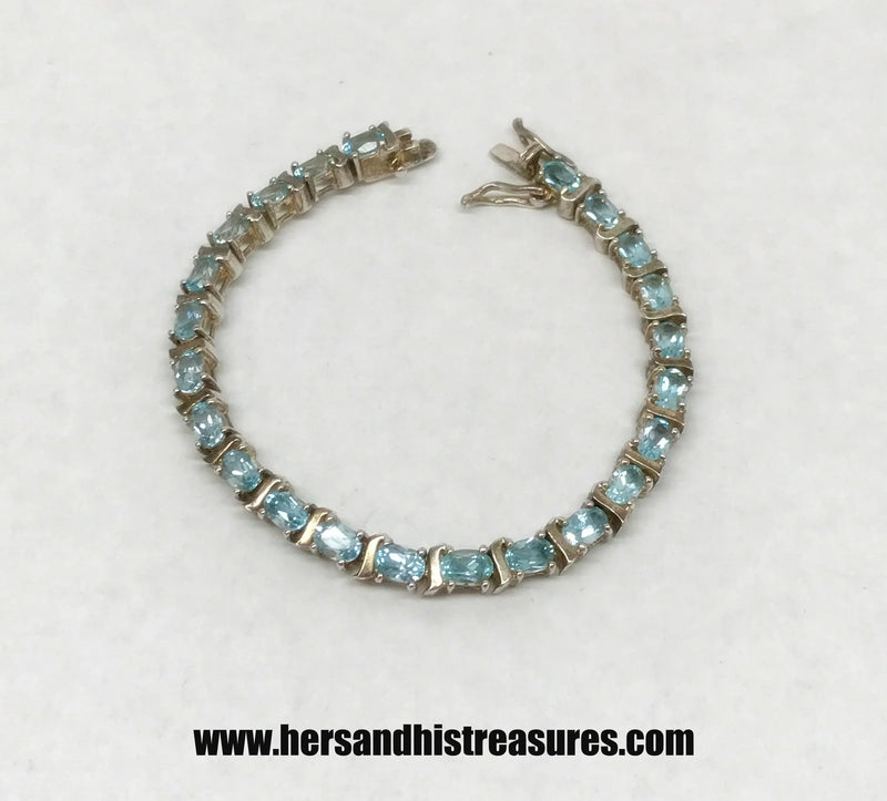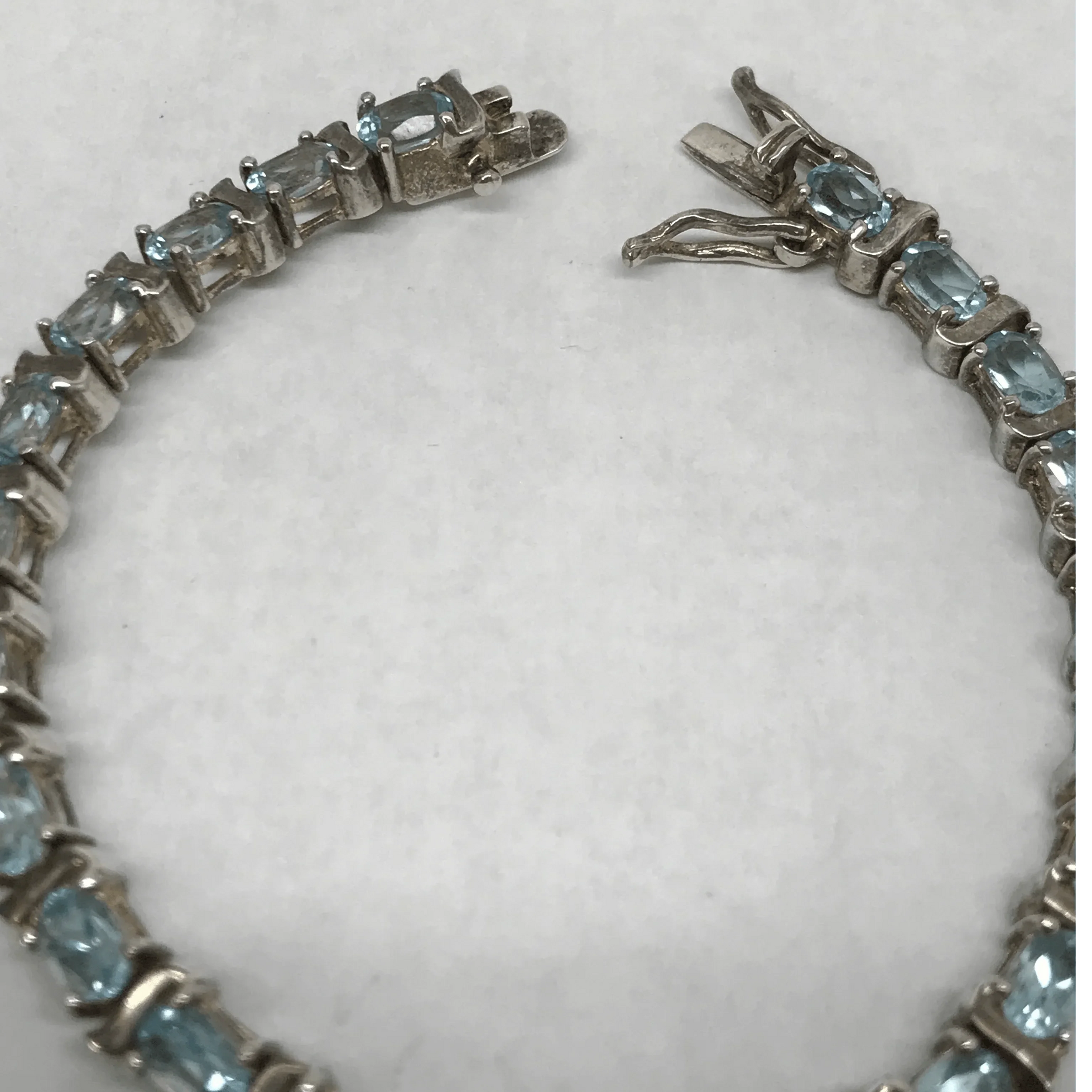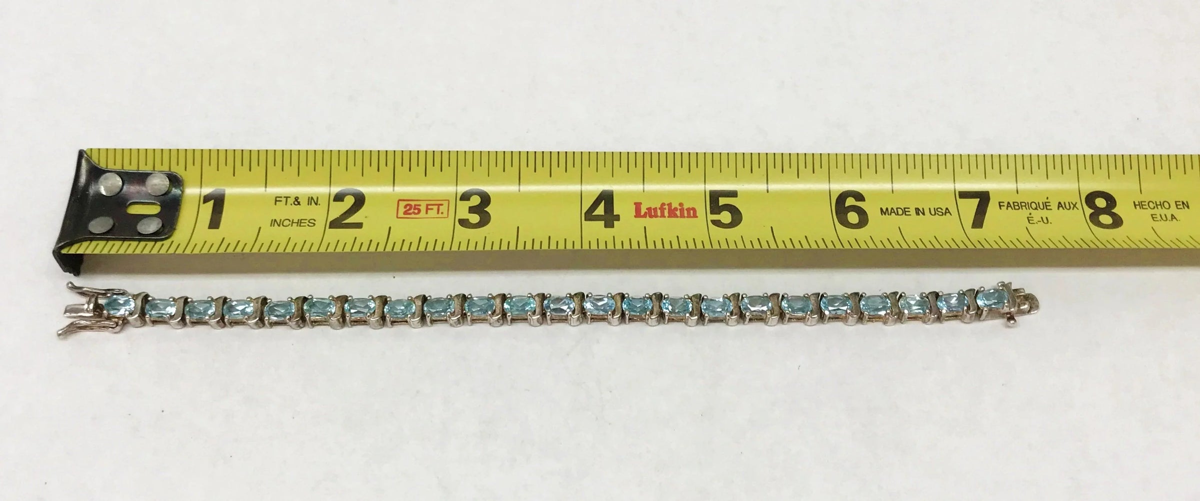 Beautiful oval light blue topaz .925 sterling silver bracelet.  Consists of 23 oval genuine light topaz gemstones set in a rhodium plated .925 sterling silver.  This bracelet is signed HAN China and weighs 17.7 grams.  Measures 7 1/4" in length and 1/4" width.