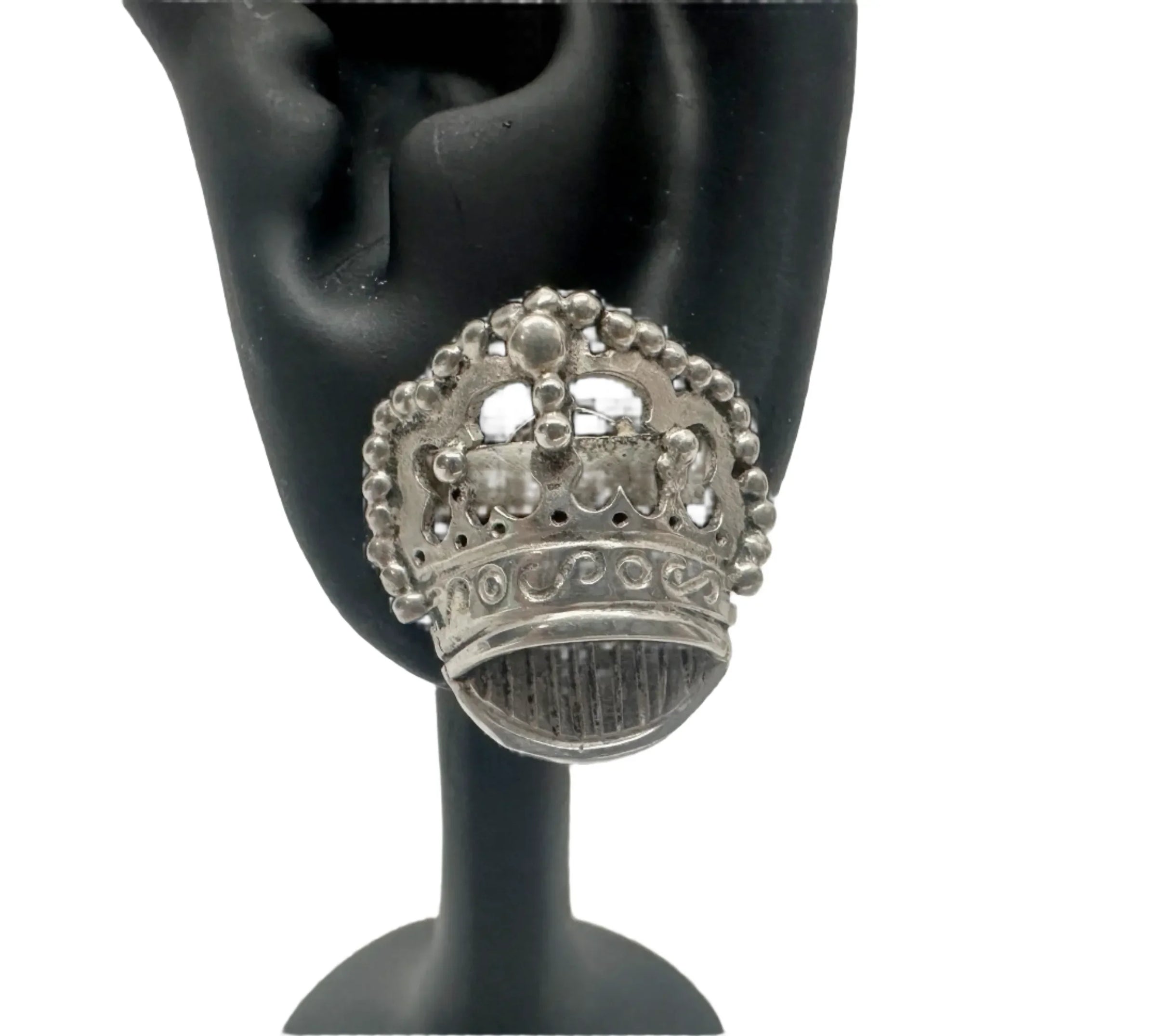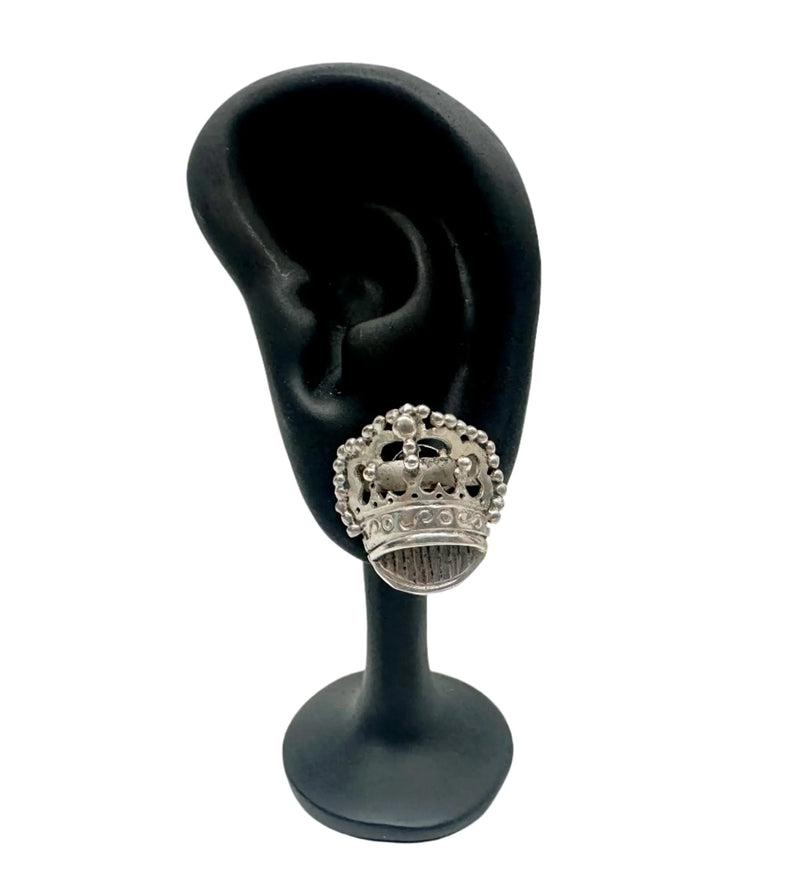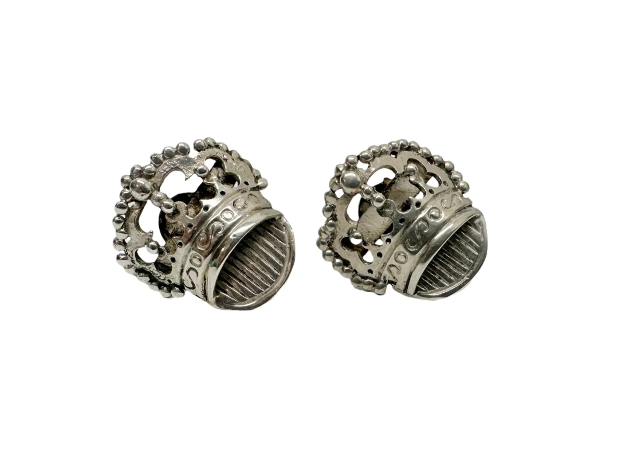 Vintage Sterling Silver Royal Crown Screw Back Earrings | Mexico